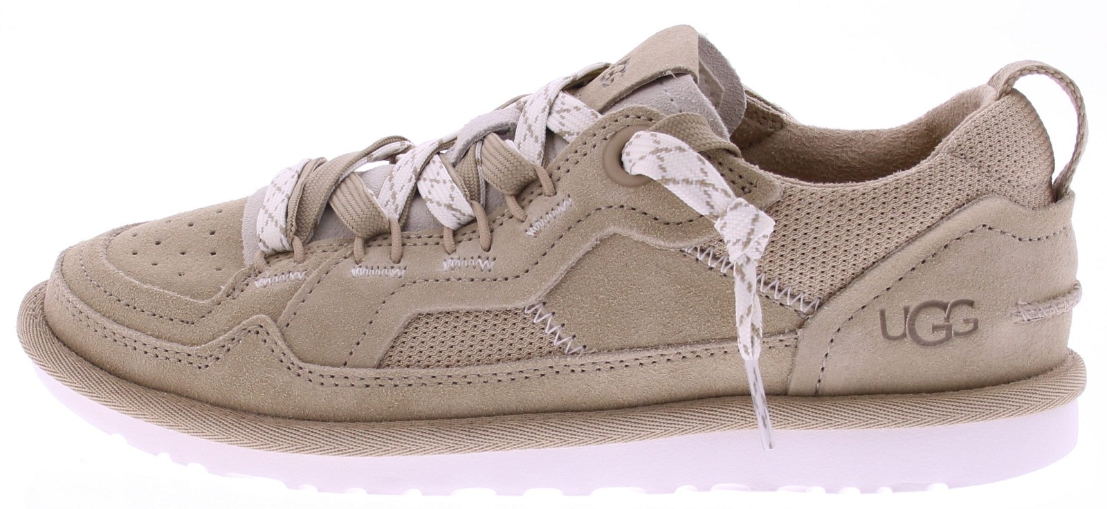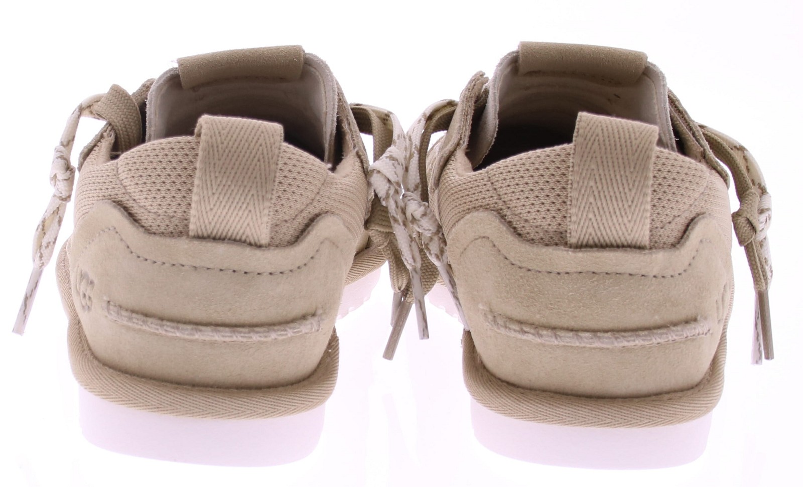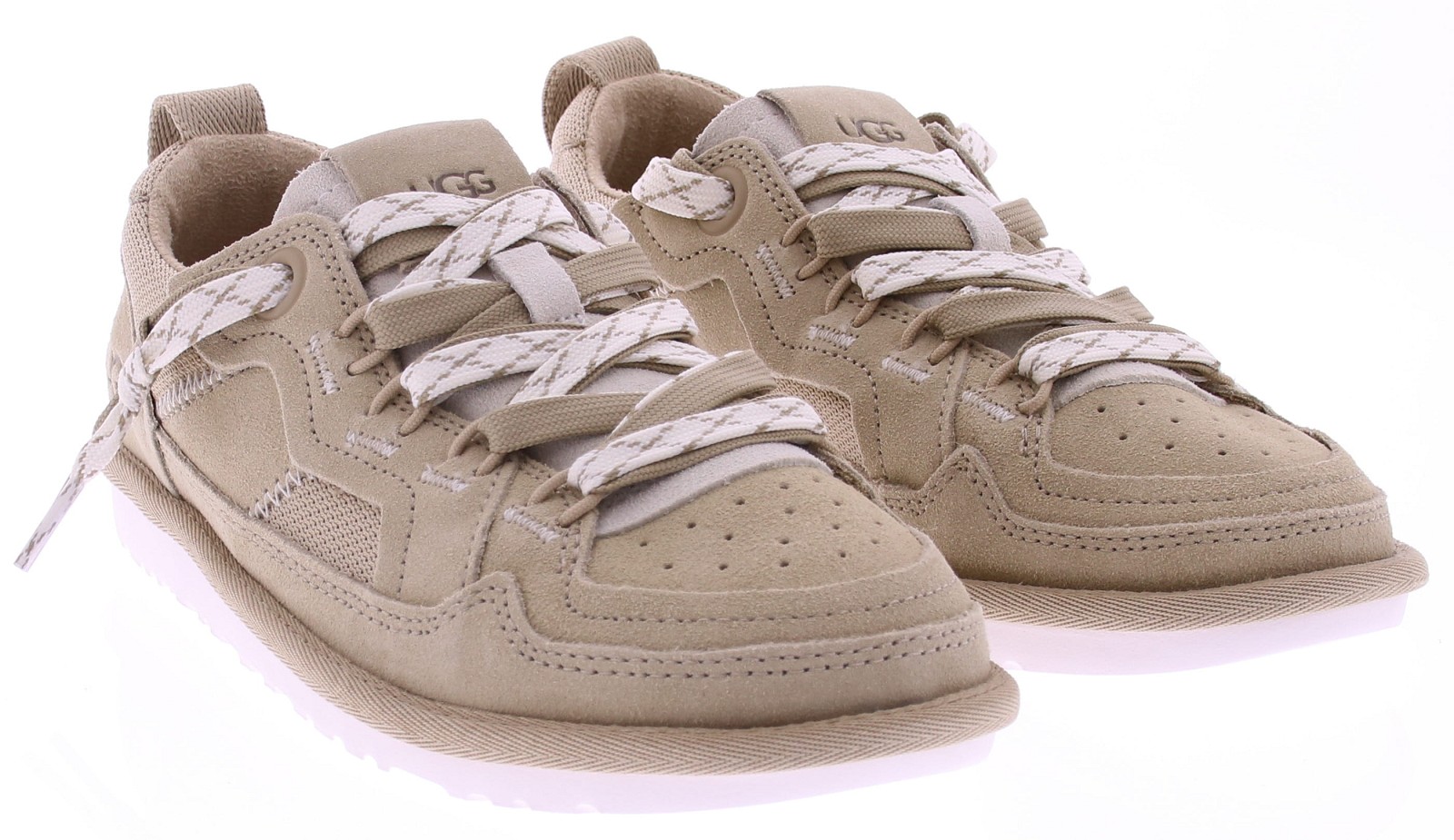 Zandkleurige suède dames sneakers van UGG model Minimel 1175301 MDSD. Deze sportieve sneakers heeft een streetwear-accent. De Minimel-sneaker biedt extra comfort in een nieuw, laag profiel. Hij beschikt over een bovenstuk van gemengd materiaal, gemaakt van suède en 100% gerecyclede vezels voor een exclusieve uitstraling. Bovendien biedt de ultralichte EVA-buitenzool van suikerriet de hele dag door optimaal comfort. Dankzij de tweekleurige platte veters en het dubbele vetersysteem kun je ze op allerlei manieren strikken en stylen, helemaal naar jouw smaak. Kijk ook eens bij onze andere UGG damesschoenen bij Klijsen.