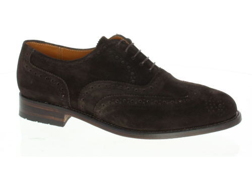 De Van Bommel Olda 04.11 is een klassieke herenschoen met een verfijnde brogue-afwerking. Deze stijlvolle veterschoen is uitgevoerd in luxe donkerbruin suède en staat garant voor comfort en klasse.