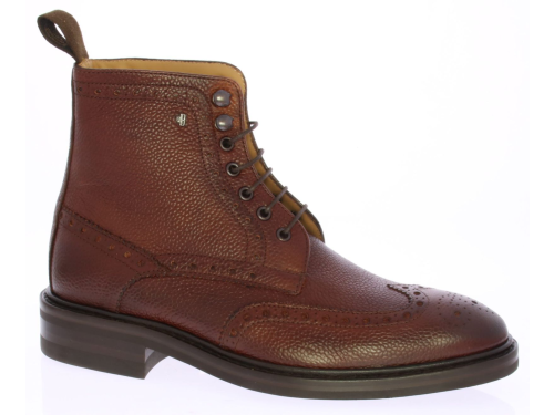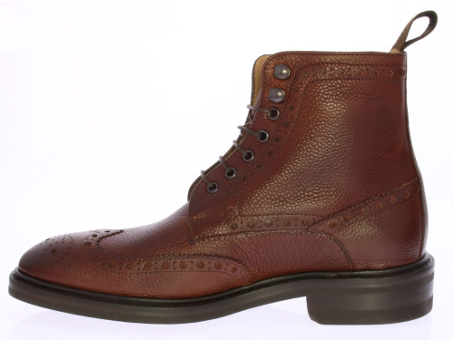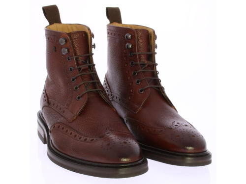 Rood/bruine leren heren hoge veterboot van Van Bommel. De boot heeft een broque neus. De schoen heeft een rubberen zool en is breedte G1/2. Er zit een treklus aan de hiel.
