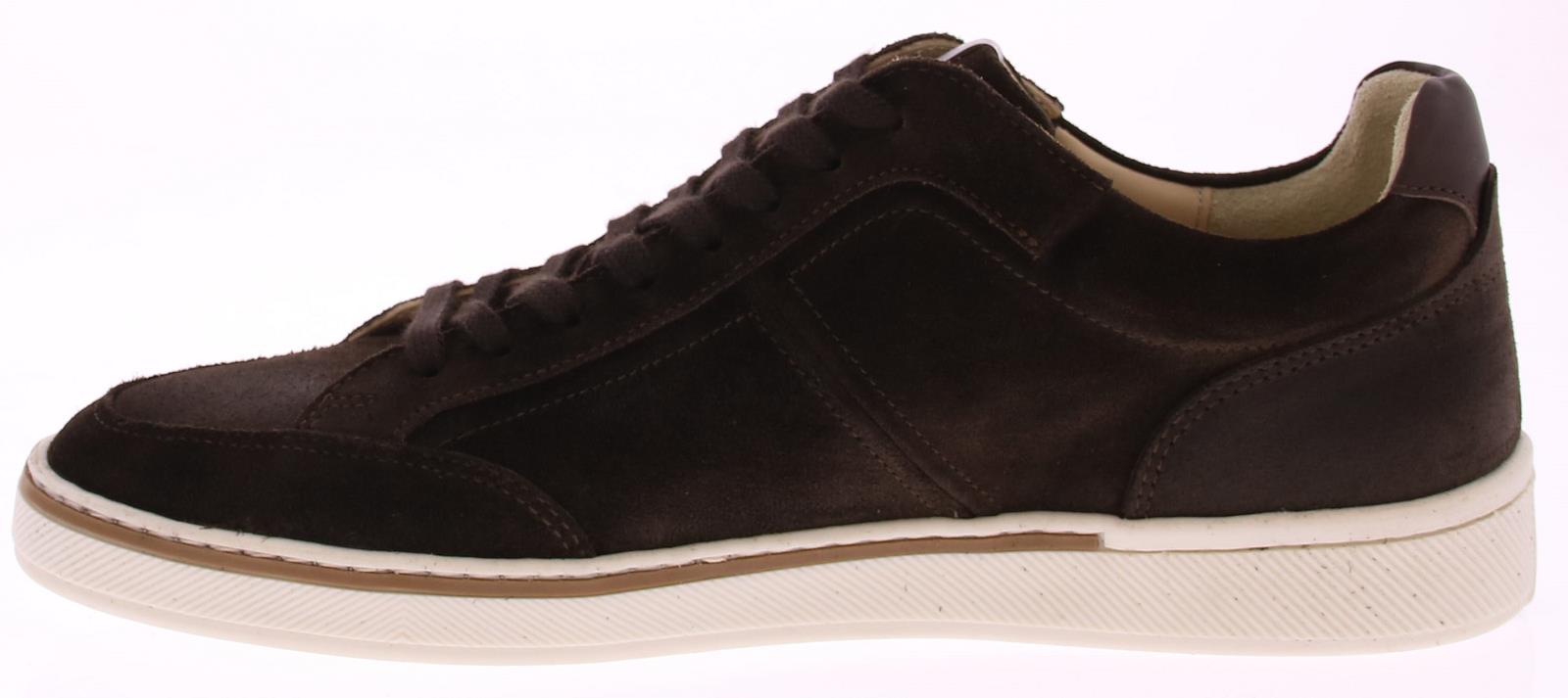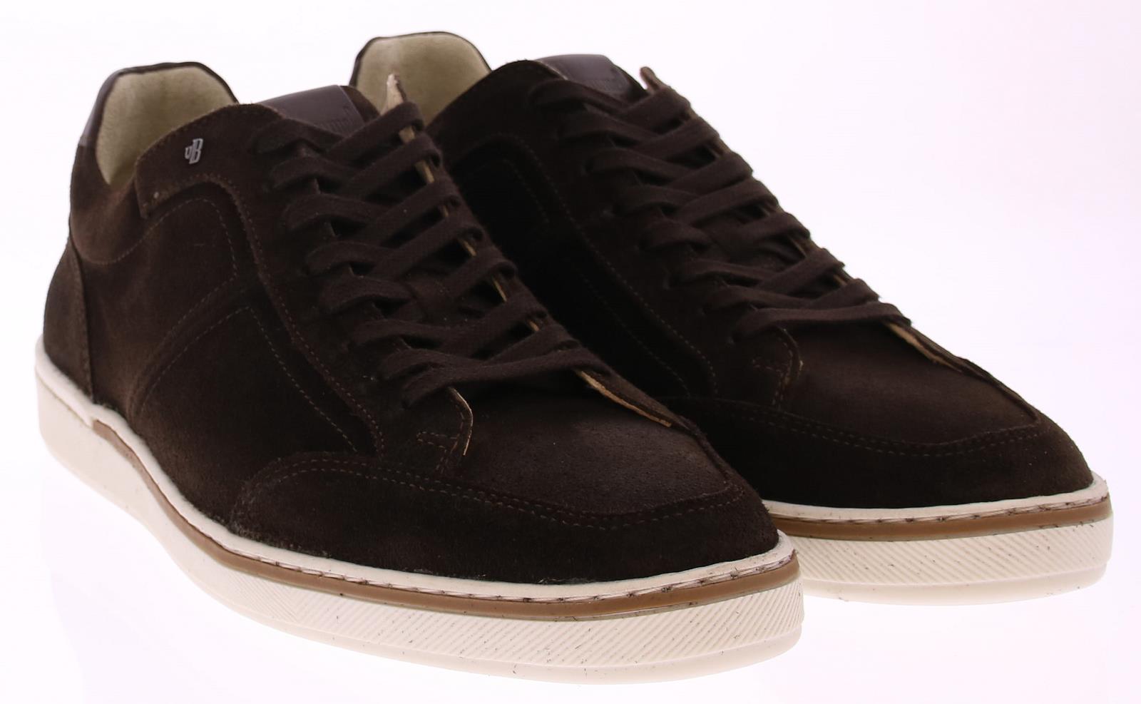Donker bruine suede heren sneaker van Van Bommel. De voering is van leer en de zool van rubber. De binnenzool is uitneembaar. Deze schoen wordt in een H-breedte gemaakt.