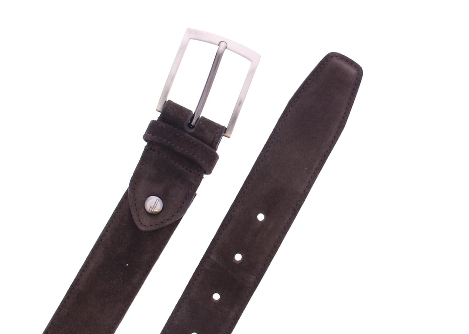 Donkerbruin suède heren Van Bommel riem artikel cbm-1001-21-02l. Deze riem is in te korten aan de gesp-kant.