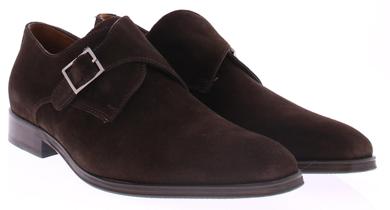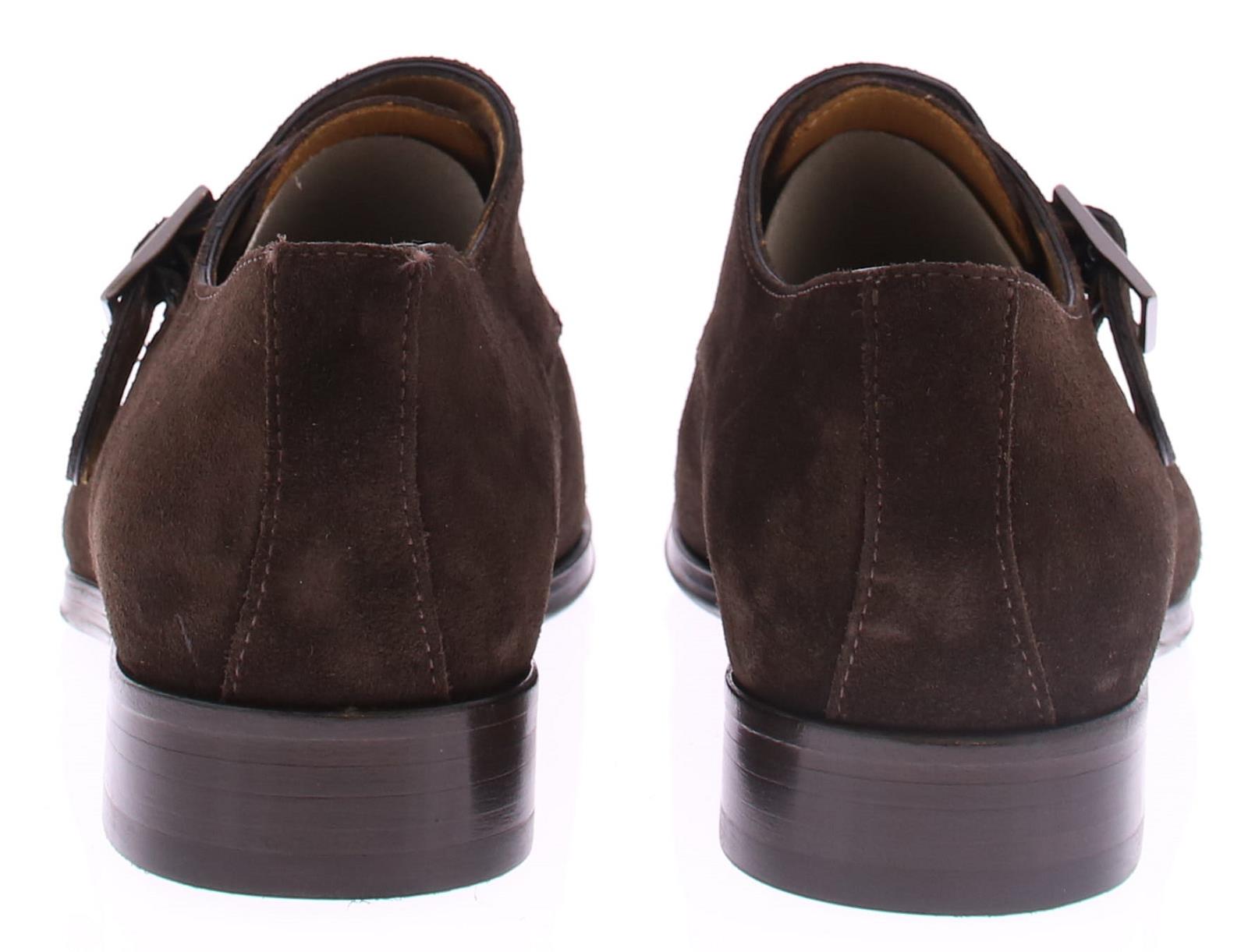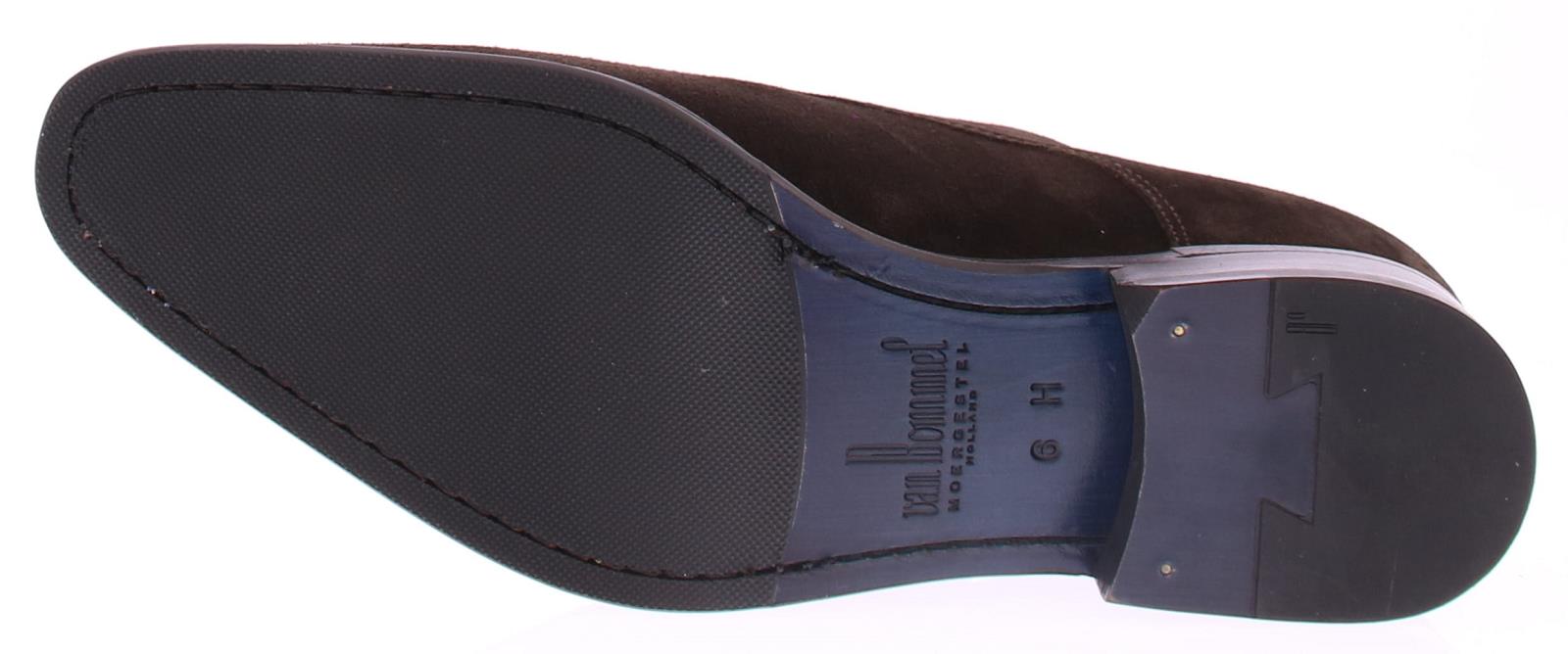 Heren gespschoen van Van Bommel Raffa 06.02. De schoen is gemaakt op de H-leest en heeft een bruin suede bovenwerk. De voering en zool zijn van leer.
