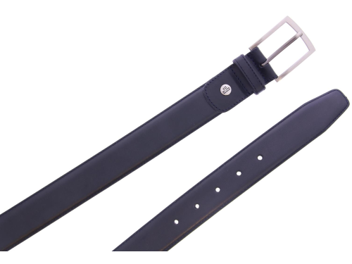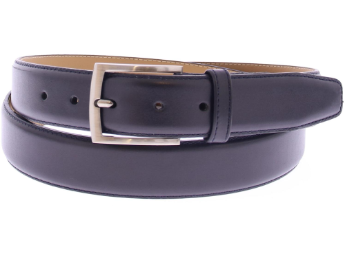 Donkerblauwe leren heren riem van Van Bommel. Deze riem is leer tegengevoerd en in te korten aan de gesp kant.