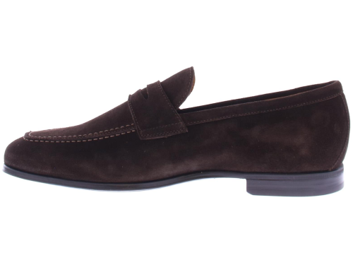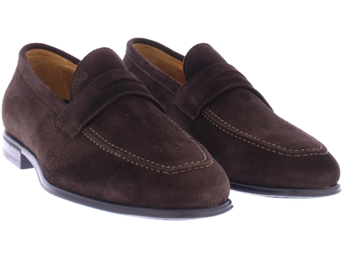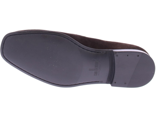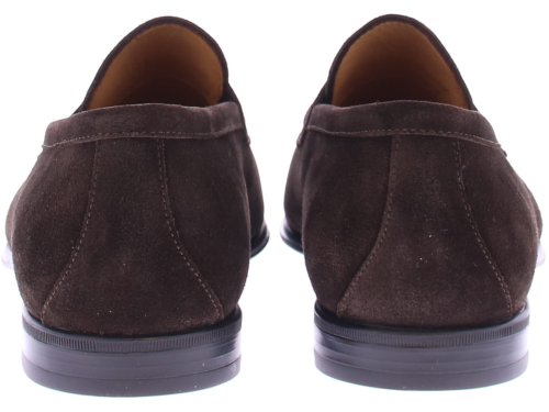 Heren van Bommel instapper uitgevoerd in donker bruin suede op een zwart rubber zool . De schoen is leer gevoerd en is gemaakt in breedte G1/2.
