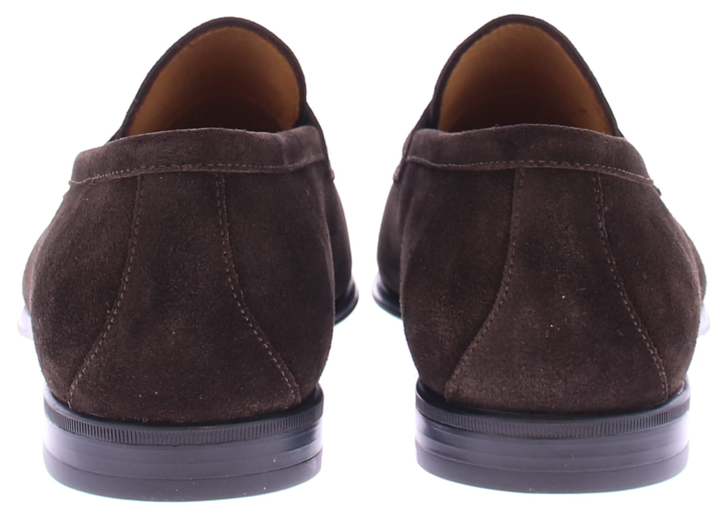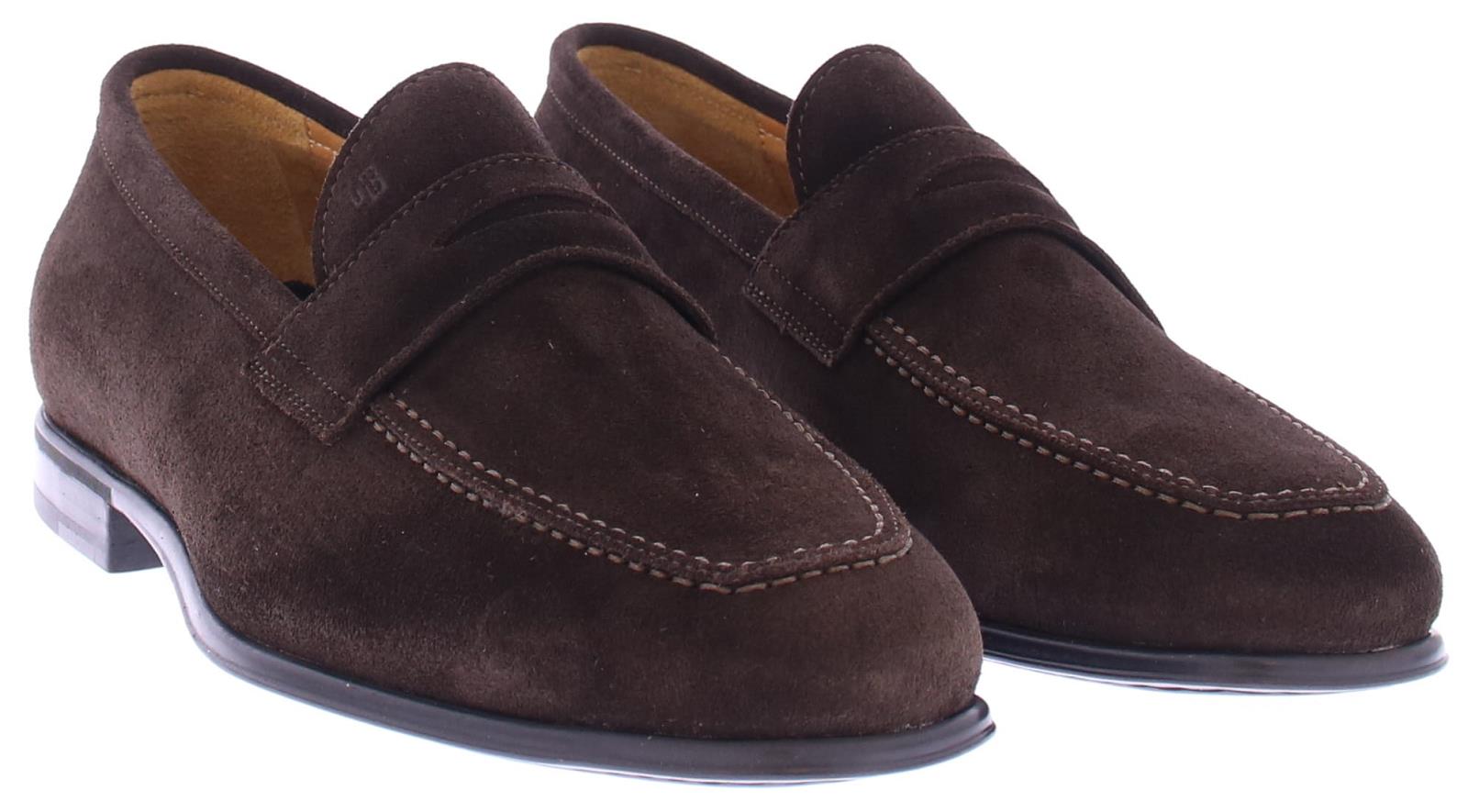 Heren van Bommel instapper uitgevoerd in donker bruin suede op een zwart rubber zool . De schoen is leer gevoerd en is gemaakt in breedte G1/2.