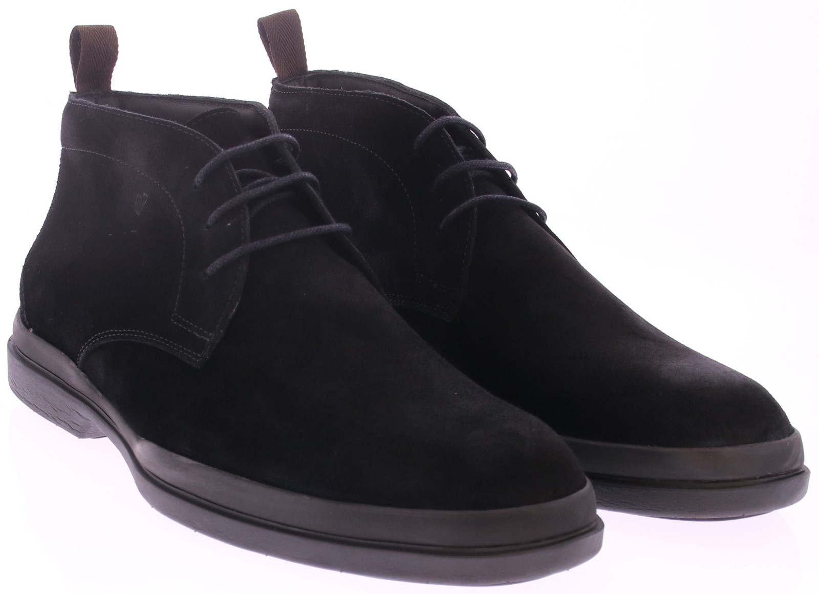 De van Bommel Magma 02.01 is een eigentijdse chukka boot in diepzwart suède. Dit model combineert een moderne, cleane uitstraling met het ongeëvenaarde comfort en vakmanschap waar Floris van Bommel bekend om staat. De zwarte zool en het minimalistische design maken deze schoen perfect voor zowel formele als casual gelegenheden.