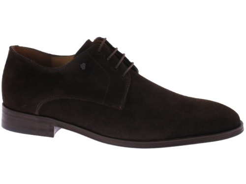 Donkerbruin suède heren veterschoen van Van Bommel. Dit klassieke model in H-leest is uitgevoerd in rijk, zacht suède en heeft een slanke, tijdloze belijning die moeiteloos aansluit bij zowel formele als smart-casual outfits. De leren zool met rubber slijtvlak biedt duurzame grip en een verfijnd loopgevoel, terwijl de leren voering zorgt voor een natuurlijk comfortabele pasvorm. Ontdek ook de andere heren veterschoenen van Van Bommel bij Klijsen.