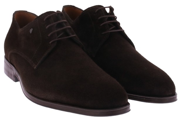 Donkerbruin suède heren veterschoen van Van Bommel. Dit klassieke model in H-leest is uitgevoerd in rijk, zacht suède en heeft een slanke, tijdloze belijning die moeiteloos aansluit bij zowel formele als smart-casual outfits. De leren zool met rubber slijtvlak biedt duurzame grip en een verfijnd loopgevoel, terwijl de leren voering zorgt voor een natuurlijk comfortabele pasvorm. Ontdek ook de andere heren veterschoenen van Van Bommel bij Klijsen.
