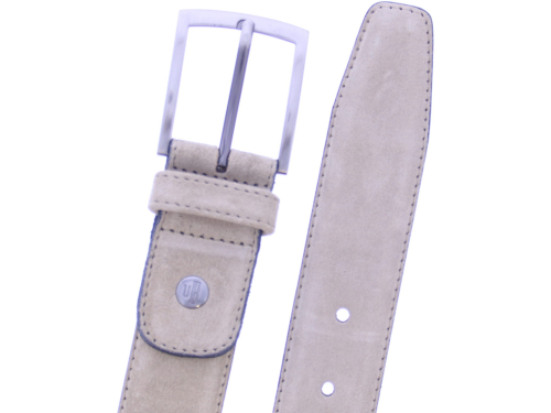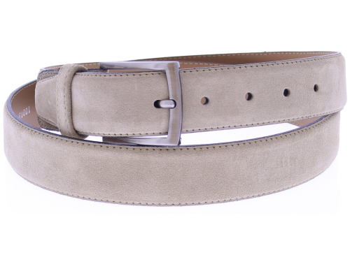 Beige suède herenriem van Floris van Bommel in suède met leren voering. De riem is in te korten aan de gespkant. De lengte is 115 cm. Deze riem past bij een schoen uit onze collectie met artikelnummer:45384