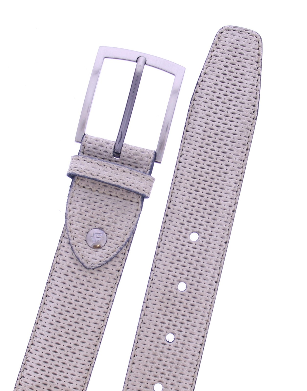 Beige suède herenriem van Floris van Bommel in suède met leren voering.De cfm-10095-22-14. Deze riem is in te korten aan de gespkant. De lengte is 115 cm. Deze riem past bij een schoen uit onze collectie met artikelnummer:45353
