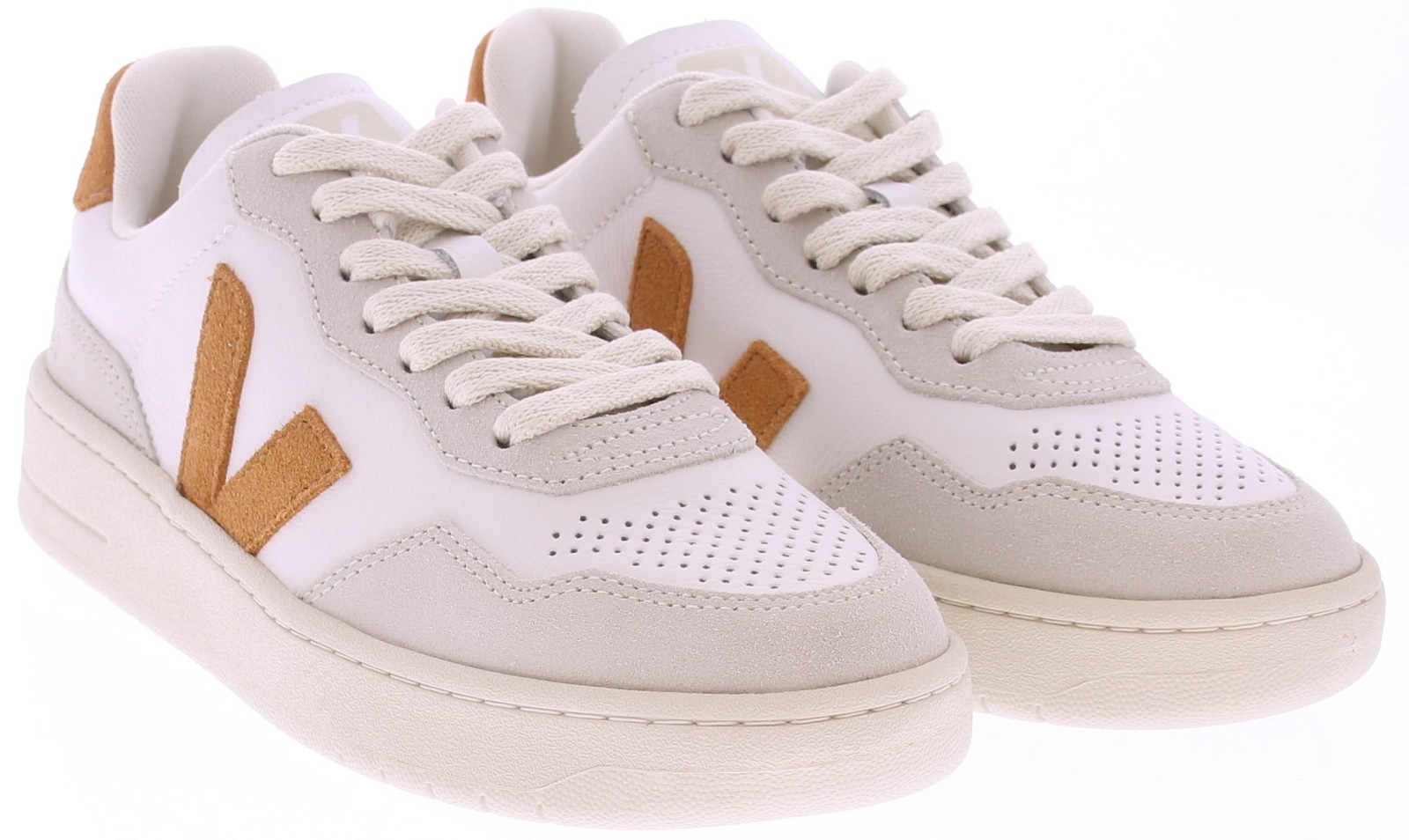 Wit organic leren dames sneaker van Veja. Gemaakt in Brazilië met een bovenwerk van O.T. leer (Organic Traced) is afkomstig van 100% gecertificeerde biologische boerderijen in Uruguay, een land dat bekend staat om zijn veeteeltcultuur en hoogwaardige leer. Dit is ons zachtste en dunste leer. Het wordt mechanisch behandeld om soepelheid en finesse te verkrijgen en vervolgens in Brazilië gelooid met minder kleurstoffen dan conventioneel leer. VEJA gebruikt kleurstoffen die voldoen aan de regelgeving en zorgt voor verantwoord watergebruik tijdens het looiproces.