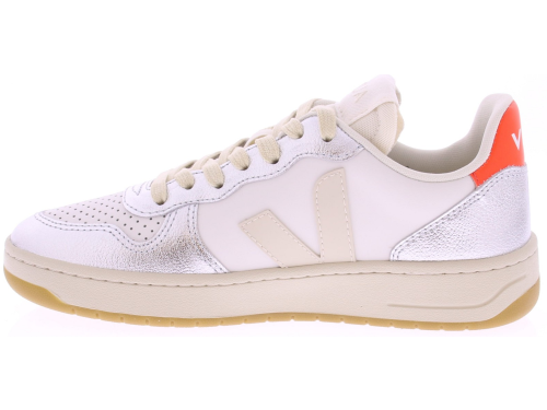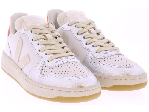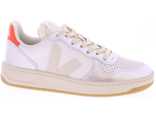 Wit met zilver organic leren dames sneaker van Veja. Gemaakt in Brazilië met een bovenwerk van O.T. leer (Organic Traced) is afkomstig van 100% gecertificeerde biologische boerderijen in Uruguay, een land dat bekend staat om zijn veeteeltcultuur en hoogwaardige leer. Dit is ons zachtste en dunste leer. Het wordt mechanisch behandeld om soepelheid en finesse te verkrijgen en vervolgens in Brazilië gelooid met minder kleurstoffen dan conventioneel leer. VEJA gebruikt kleurstoffen die voldoen aan de regelgeving en zorgt voor verantwoord watergebruik tijdens het looiproces.