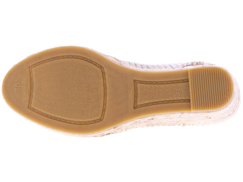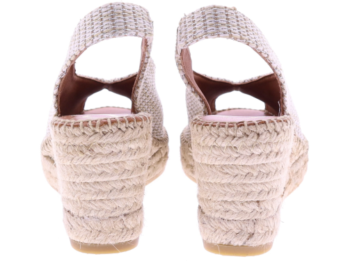 Roomkleurig raffia dames sandalen van Viguera. Deze espadrilles hebben een raffia bovenwerk waarin een bruine draad en subtiel zilverdraad zijn meegeweven voor een zomerse uitstraling. De sleehak van circa 7 cm is uitgevoerd in een klassieke touwzool en zorgt voor een vrouwelijk silhouet. De open teen en het elastiek in de hiel bieden extra comfort en een goede pasvorm. Mooi te combineren met jurken, rokken of luchtige zomerbroeken. Ontdek ook de andere dames espadrilles van Viguera bij Klijsen.