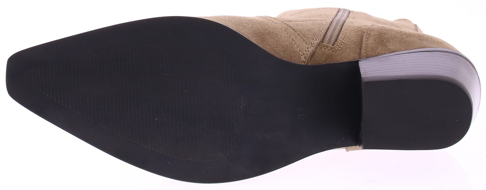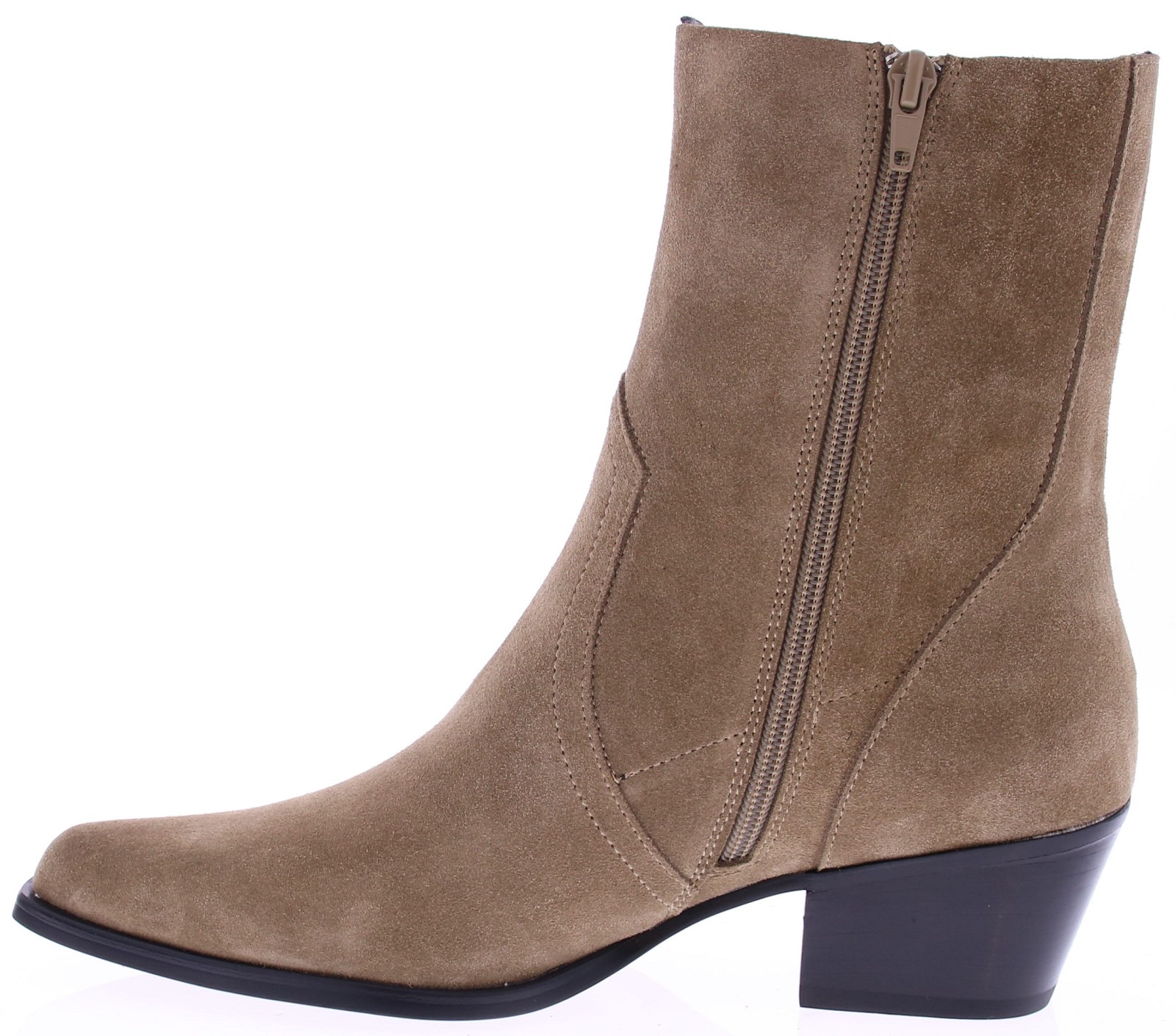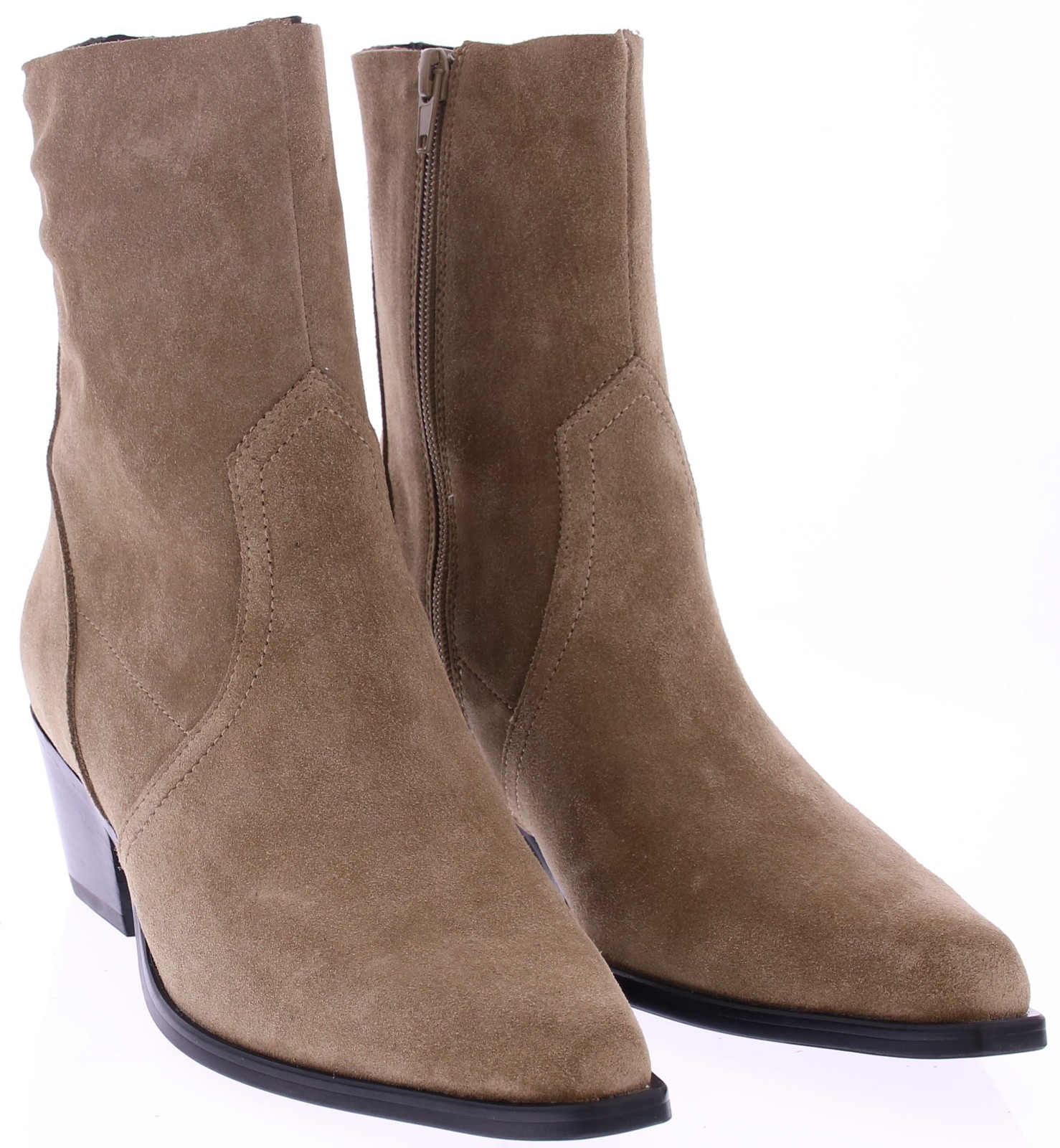 Taupe suede dames enkellaars Yelena van Vivian Ray. Het model heeft een verfijnde city western-uitstraling met een wat stoerdere comfortabele blokhak van 5 cm. Het laarsje heeft een rits en de schacht is ongevoerd wat zorgt voor extra souplesse en een fijne pasvorm. Gemaakt van sportief suede en voorzien van een stevige zool voor dagelijks gebruik. Combineer moeiteloos met zowel een jeans als een rok of jurk.