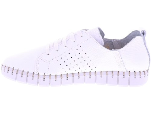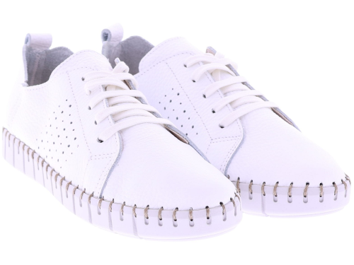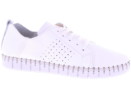 Wit leren dames sneakers van Cypres. Model Roshan is uitgevoerd in superzacht, ongevoerd leer dat zich soepel naar de voet vormt. De geperforeerde zijkant zorgt voor extra ventilatie, terwijl het zachte voetbed direct comfort biedt. De flexibele zool met grof stiksel rondom geeft de sneaker een casual en handgemaakte uitstraling. Het voetbed is uitneembaar. Een ideaal model voor dagelijks gebruik dankzij de lichte en soepele pasvorm. Ontdek ook de andere dames sneakers van Cypres bij Klijsen.