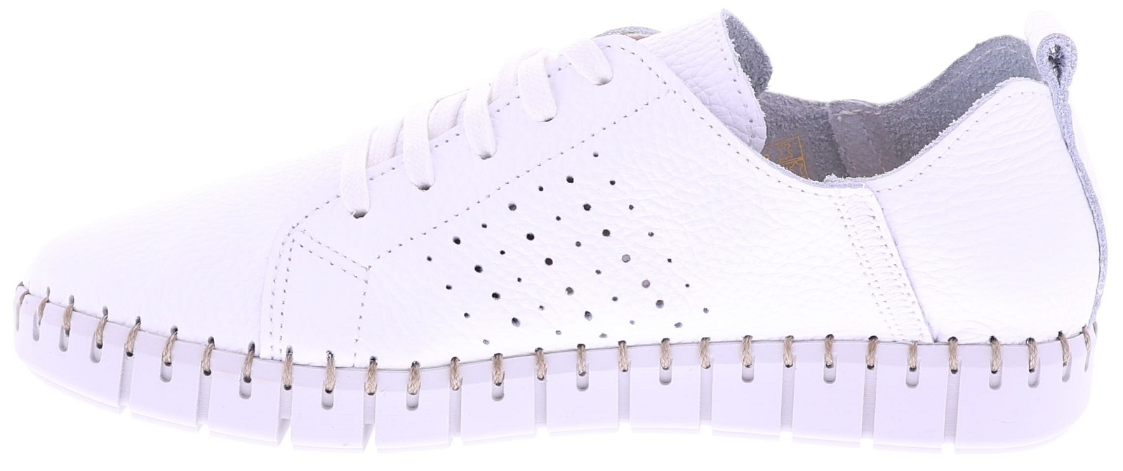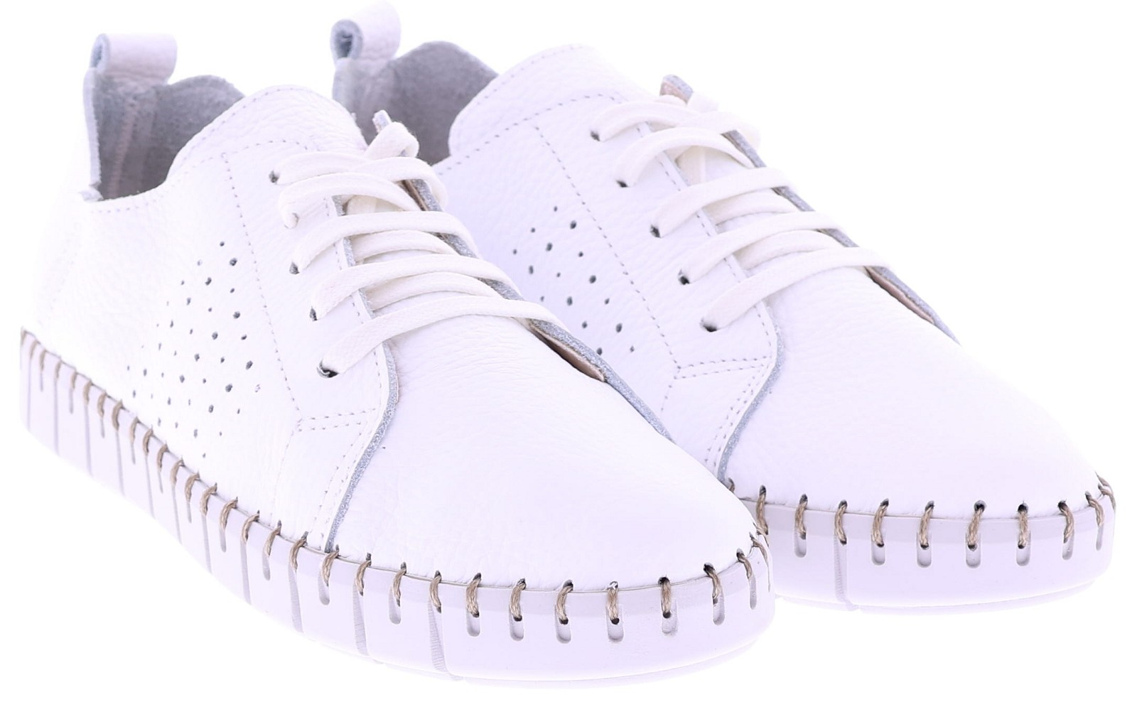Wit leren dames sneakers van Cypres. Model Roshan is uitgevoerd in superzacht, ongevoerd leer dat zich soepel naar de voet vormt. De geperforeerde zijkant zorgt voor extra ventilatie, terwijl het zachte voetbed direct comfort biedt. De flexibele zool met grof stiksel rondom geeft de sneaker een casual en handgemaakte uitstraling. Het voetbed is uitneembaar. Een ideaal model voor dagelijks gebruik dankzij de lichte en soepele pasvorm. Ontdek ook de andere dames sneakers van Cypres bij Klijsen.