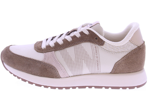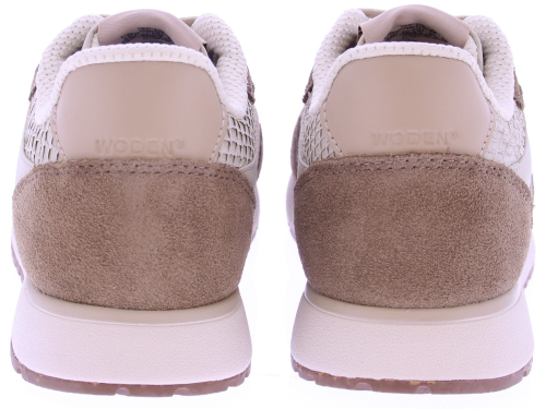 Beige met donkerbruine dames sneakers van Woden, model Ronja. Deze stijlvolle sneakers zijn uitgevoerd in een combinatie van suède en textiel, met subtiele visleren details op de hiel voor een moderne, natuurlijke look. Het uitneembare voetbed van zacht PU-schuim biedt fijne demping, terwijl de kenmerkende kurkzool en het ademende Woden airflow-voetbed zorgen voor ultiem loopcomfort, de hele dag door. Ontdek ook de andere dames sneakers van Woden bij Klijsen.