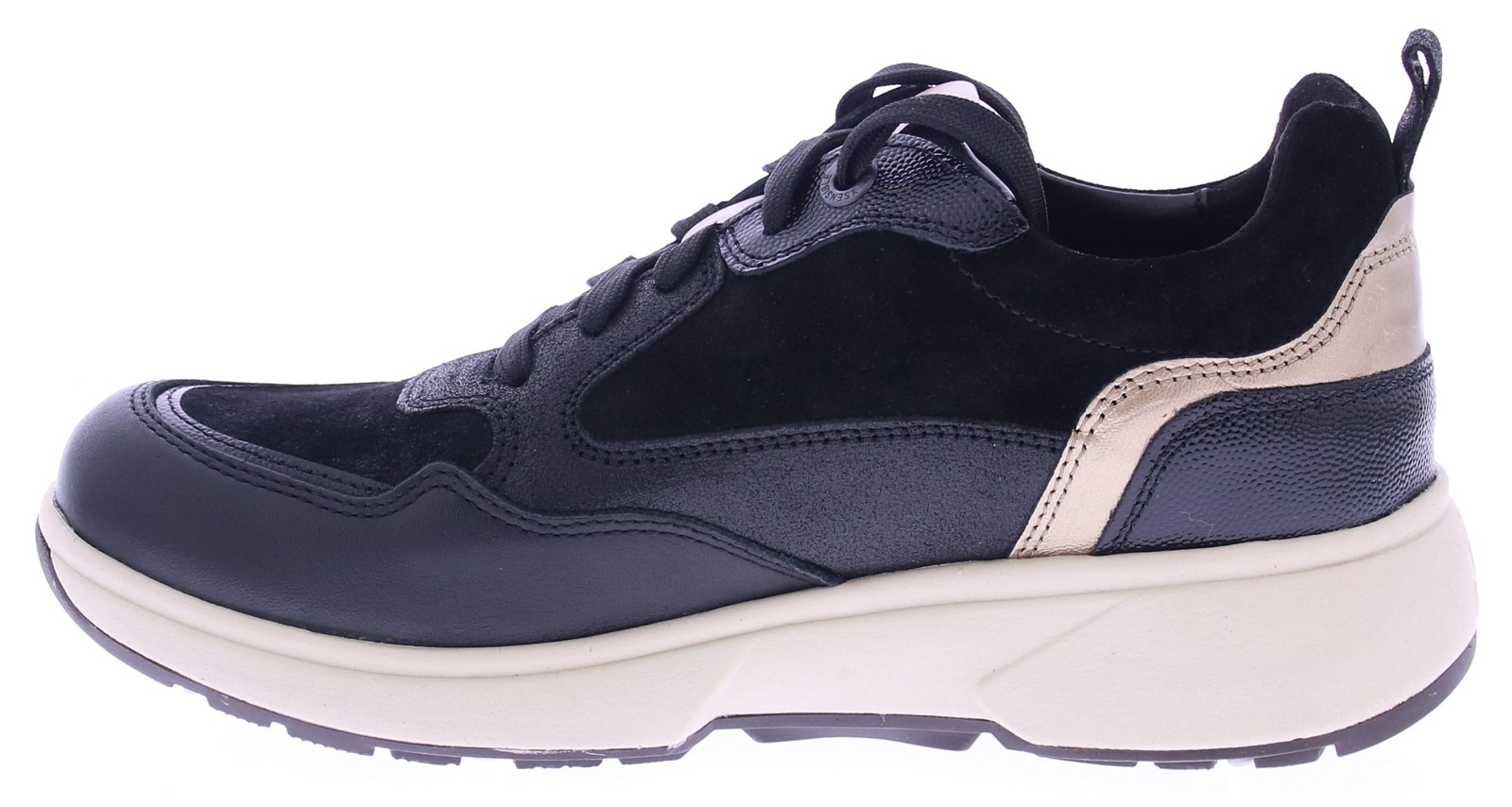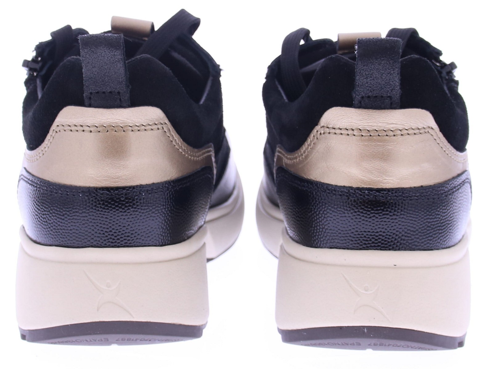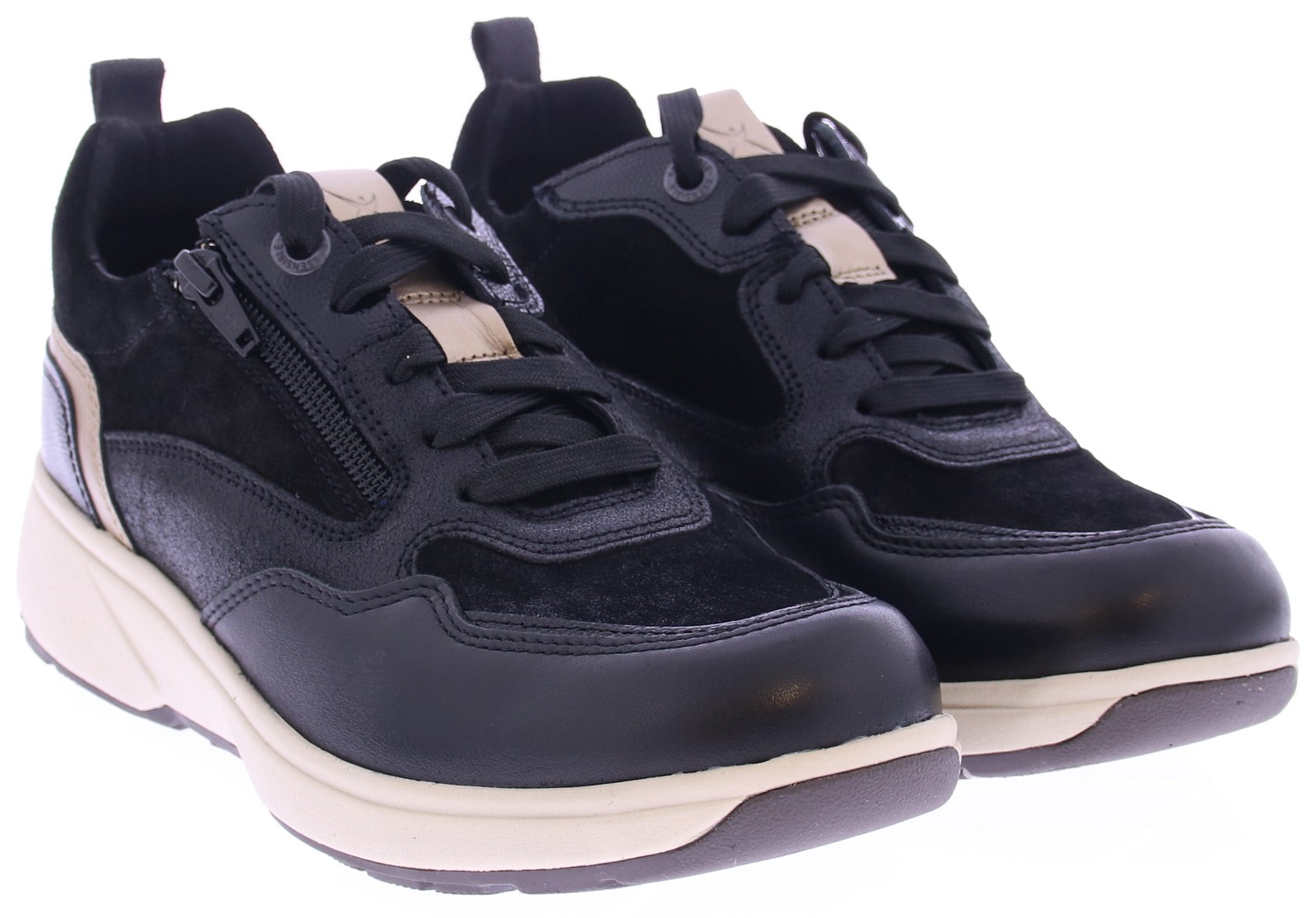 Zwart leren dames sneaker van Xsensible. Deze sneaker is gemaakt van superzacht leer de zachte kussentjes aan de rand van de schacht worden gecombineerd met appliqués in contrastkleuren en glanzende metallic details. Dankzij de rits aan de zijkant is de sneaker gemakkelijk aan- en uit te trekken. Deze schoen is uitgevoerd als de door Xsensible ontwikkelde "stretchwalker". Deze is gebaseerd op een houten balansslipper uit Japan en zorgt voor een natuurlijke en gezonde lichaamshouding. In combinatie met perfecte demping, stabiliteit en stevige grip geeft deze schoen u de meest comfortabele loopervaring. De sneaker heeft een uitneembaar voetbed en een bredere pasvorm.