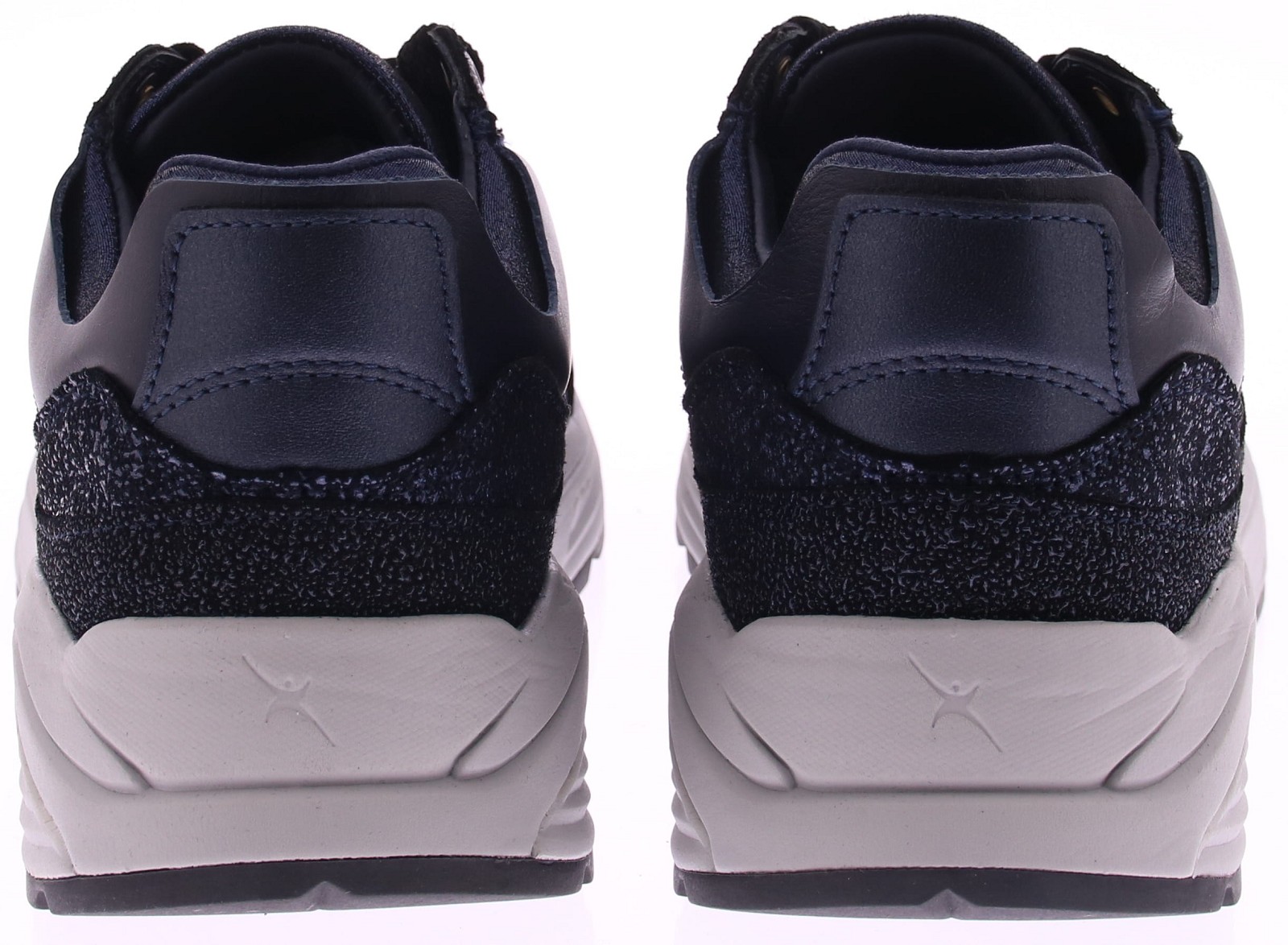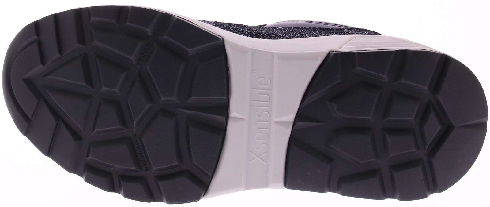 Donkerblauw leren dames sneaker van Xsensible. Deze sneaker is gemaakt van superzacht leer met stretch. De zachte kussentjes aan de rand van de schoen worden gecombineerd met appliqués en glanzende metallic details. Deze schoen is uitgevoerd in de door Xsensible ontwikkelde "stretchwalker". Deze is gebaseerd op een houten balansslipper uit Japan en zorgt voor een natuurlijke en gezonde lichaamshouding. In combinatie met perfecte demping, stabiliteit en stevige grip geeft deze schoen u de meest comfortabele loopervaring. De sneaker heeft een uitneembaar voetbed en een bredere pasvorm.