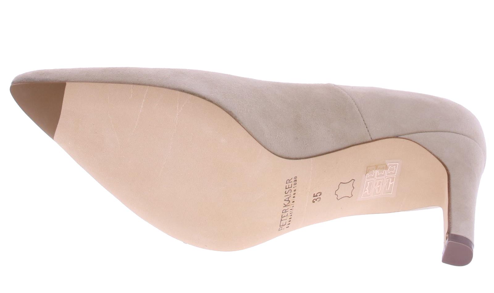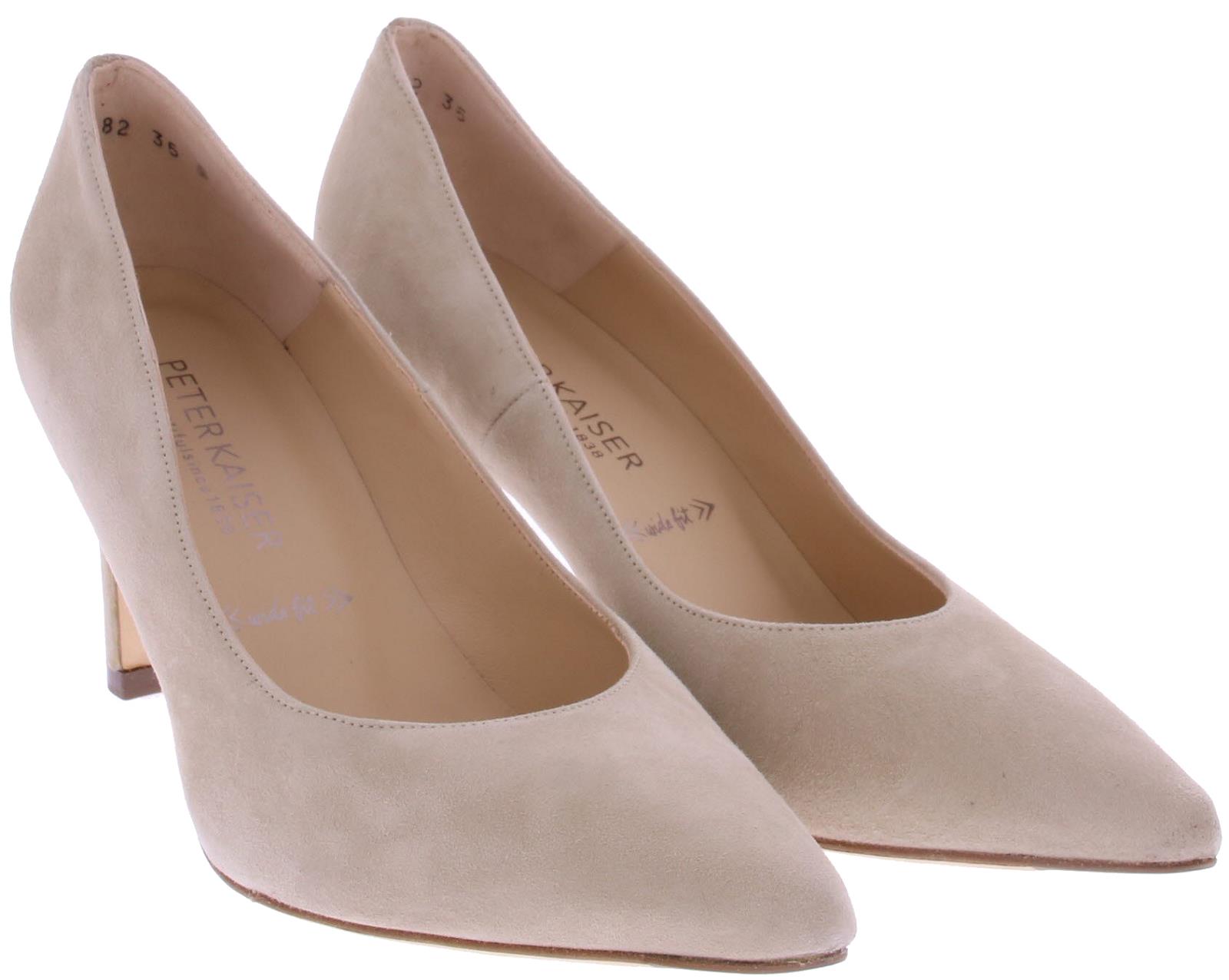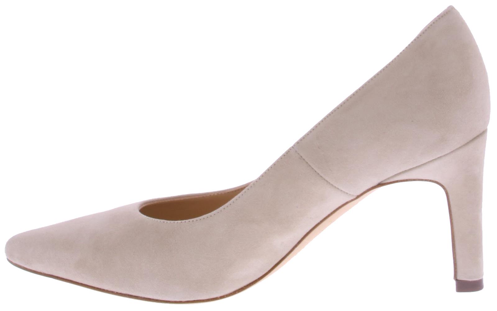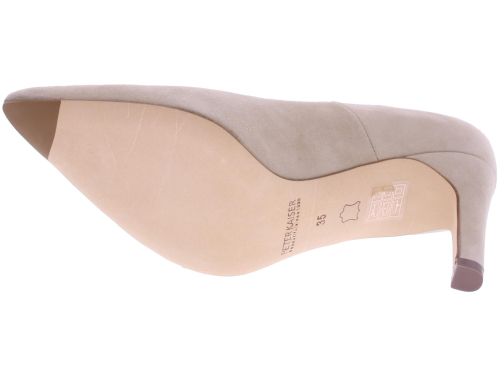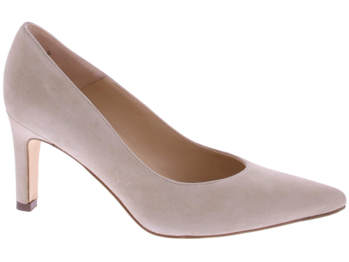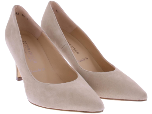 Zand-kleurige suede dames pump van Peter Kaiser. Deze pump is uitgevoerd op een "widefit," wat betekent dat ze zeer geschikt zijn voor een bredere voet. Ze hebben desondanks een mooie spitse leest. De mooie slanke hak is 7 cm hoog.