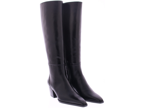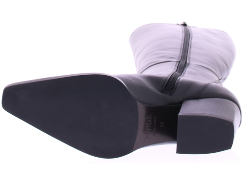 Zwart leren dames lange laars van Zinda. Deze lange laars van Zinda in zwart leer is een tijdloze en elegante toevoeging aan je schoenencollectie. De laars heeft een verfijnde, iets spitse neus en een rits aan de binnenzijde voor het gemakkelijk aan- en uittrekken. De schuine hak van 5 cm zorgt voor een vrouwelijke touch, terwijl de rubberen zool comfort en grip biedt. Stijlvol, veelzijdig en perfect voor zowel dagelijks gebruik als een avondje uit.