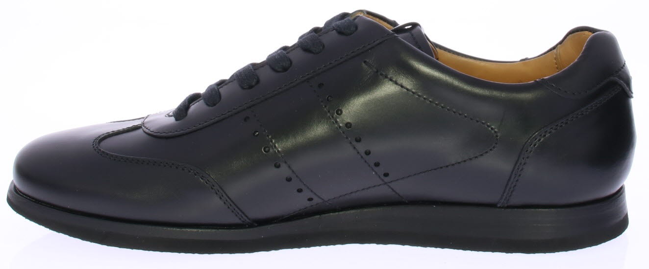 Zwart kalfsleren heren sneaker van Berwick. De schoen heeft een donkere rubber vibram zool. De voering is van leer.
