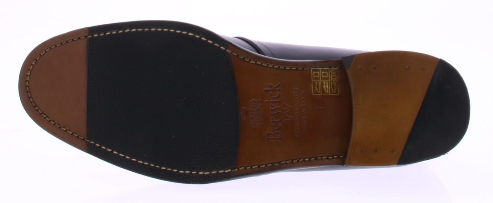 Heren veterschoen van Berwick in zwart kalfsleer met kalfsleren voering op de goodyear maakwijze gefabriceerd. De zool is van leer met rubber inzet op het slijtvlak.