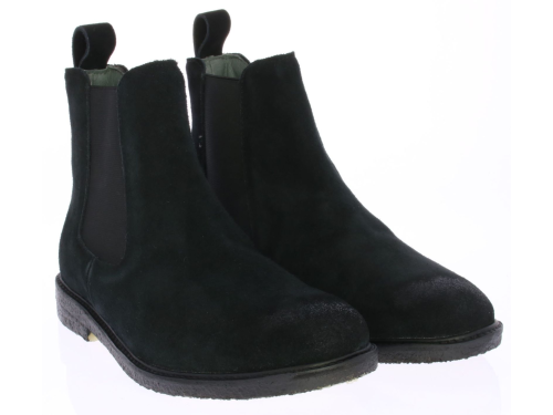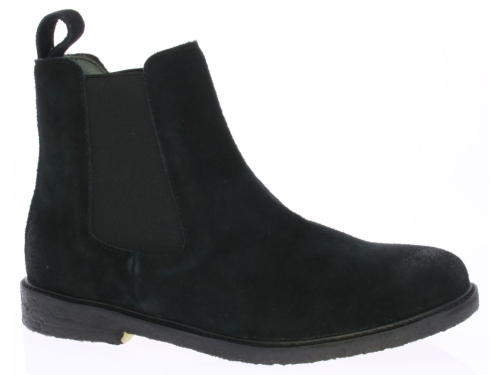 Heren Chelsea boot van Blackstone in het zwart suede op een zwarte soepele crepezool.