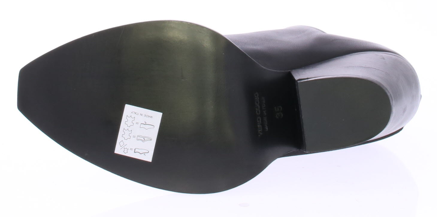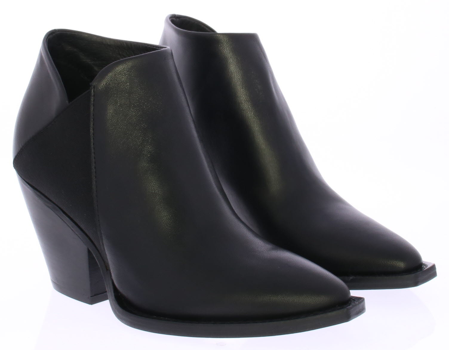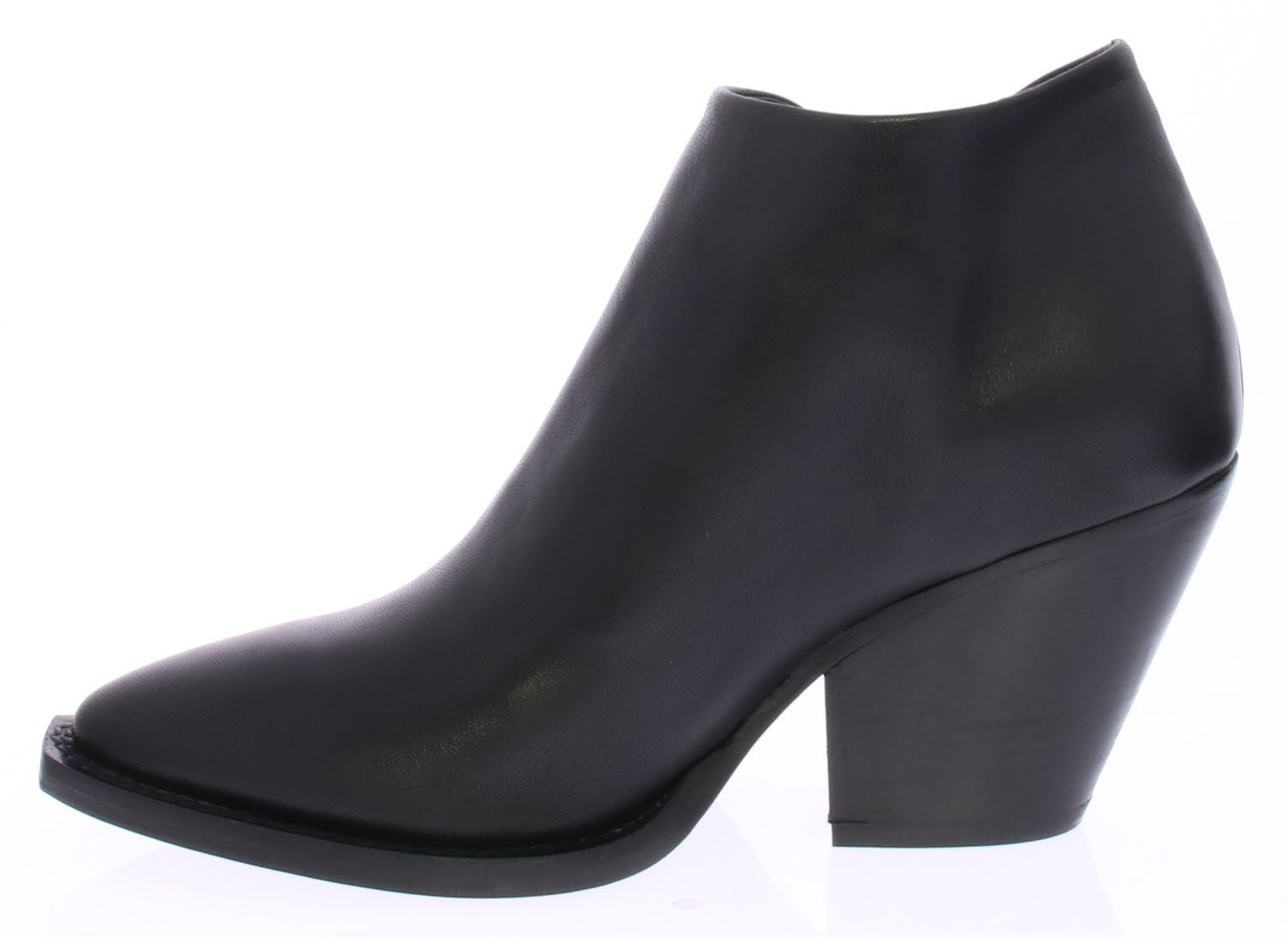 Dames boot van Curiosité. De boot is kort op de schacht en gemaakt in leer. De voering is van leer en de hak is 8 cm hoog. De combinatie van een spitse leest met stoere zoolrand afwerking geven dit laarsje zijn pit.