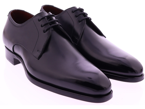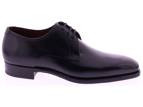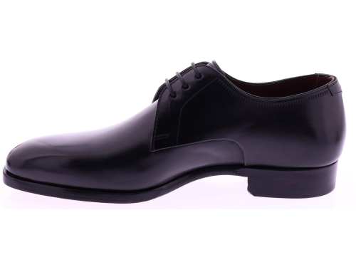 Zwarte leren heren veterschoen van Magnanni. Dit verfijnde model in de kleur zwart komt uit de exclusieve Selection-lijn van Magnanni en is gemaakt van hoogwaardig, met de hand gepolijst kalfsleer. De strakke belijning en ambachtelijke finish onderstrepen het luxe karakter van deze veterschoen. Dankzij de volledig leren zool en voering biedt het model een uitstekend ademend vermogen en superieur draagcomfort. Een tijdloze en elegante keuze voor de moderne heer.