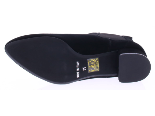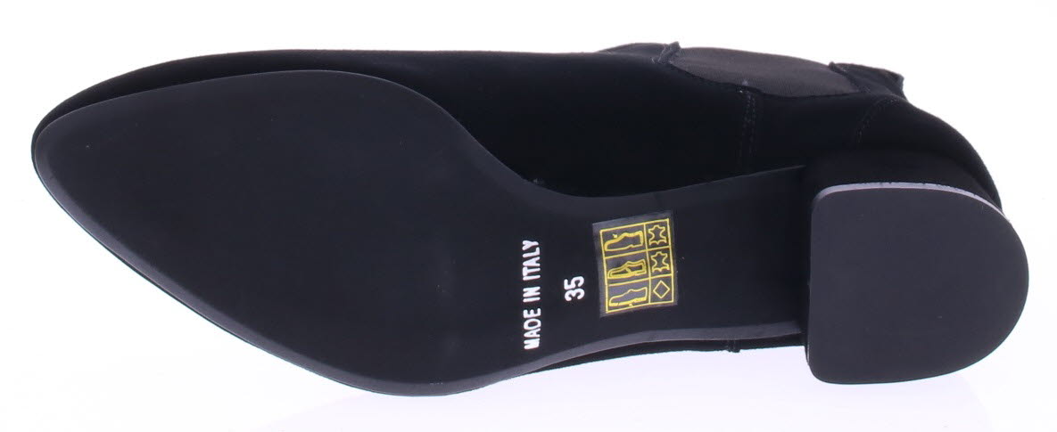 Zwart suede dames enkellaars van Pascucci. Deze mooie basislaars is simpel afgewerkt met een klein 3 cm hakje en elastiek aan de zijkant. De voering is leer en de zool is rubber.