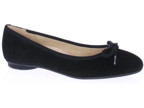 Zwarte suede ballerina van Paul Green. Gemaakt op de super soft maakwijze waardoor extra comfortabel. De zool is van buigzaaam rubber en het voetbed van leer.