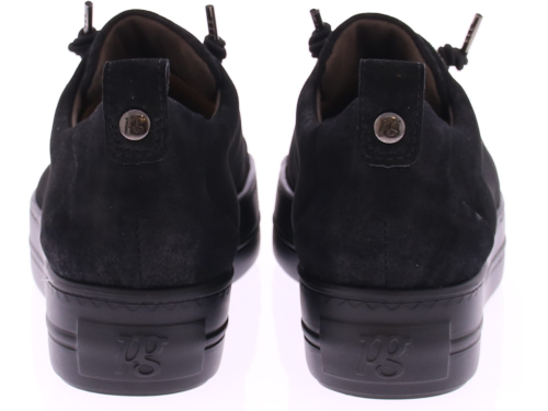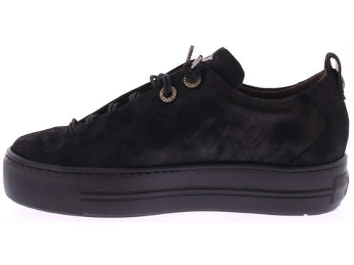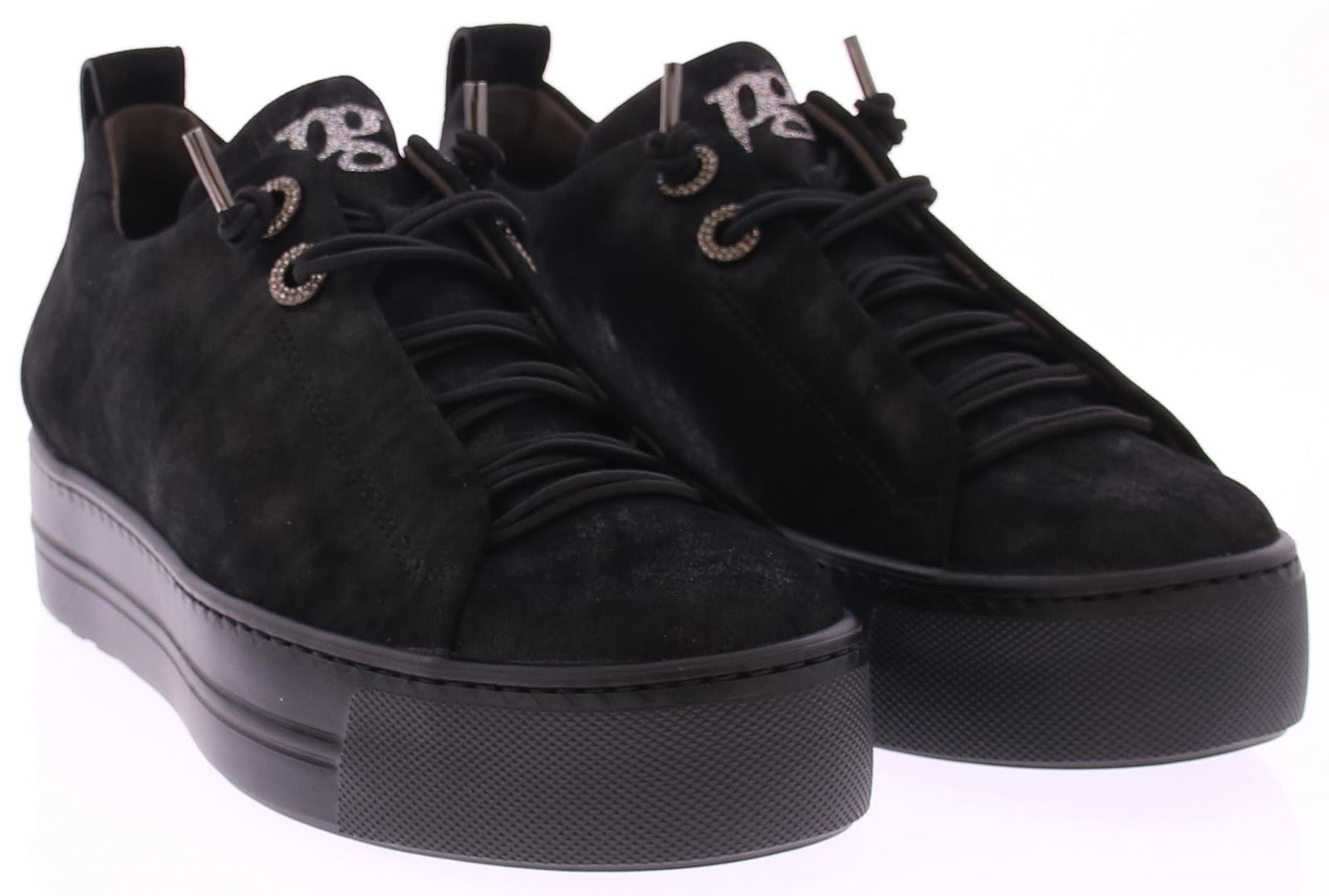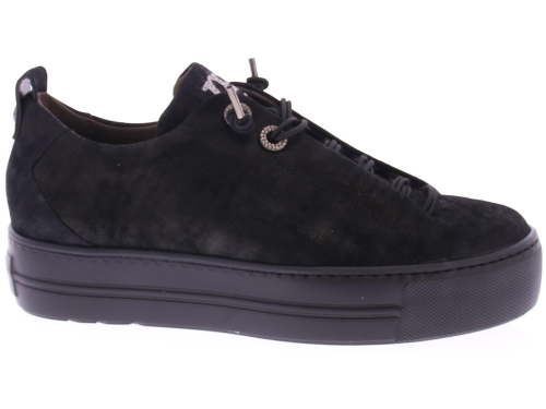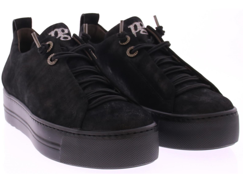 Zwart suede dames sneaker van Paul Green. Deze sneaker komt op een donkere lichtgewicht sportieve rubberen zool en heeft een blinde sluiting met een elastische veter. Dankzij de super soft maakwijze biedt dit paar extra comfort. Over het suede zit een heel subtiel poedermetallic laagje.