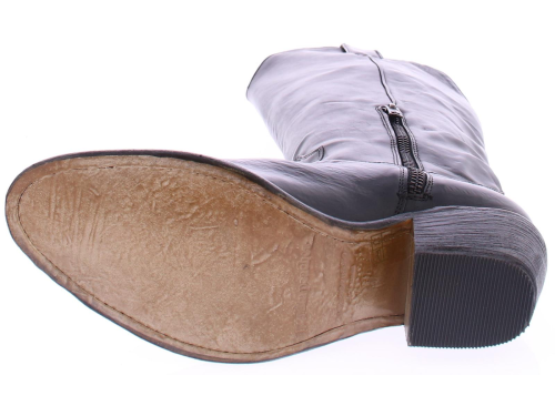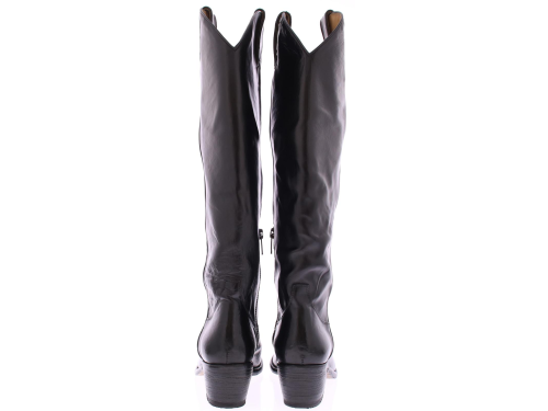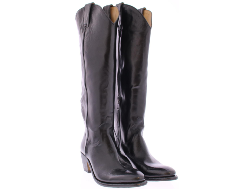 Zwarte leren lange dames laars van Perlita. Luxe city western laars in rustige uitvoering op een ovale leest met 5 cm hoge schuine hak. Ze vallen wat ruimer.