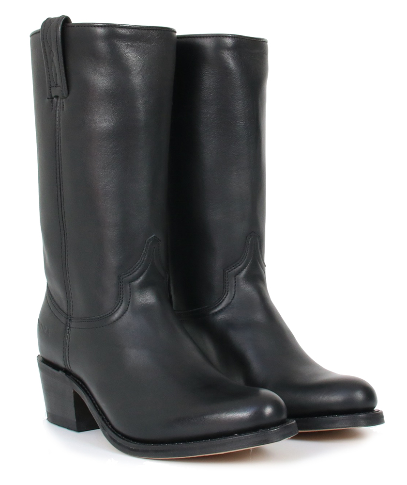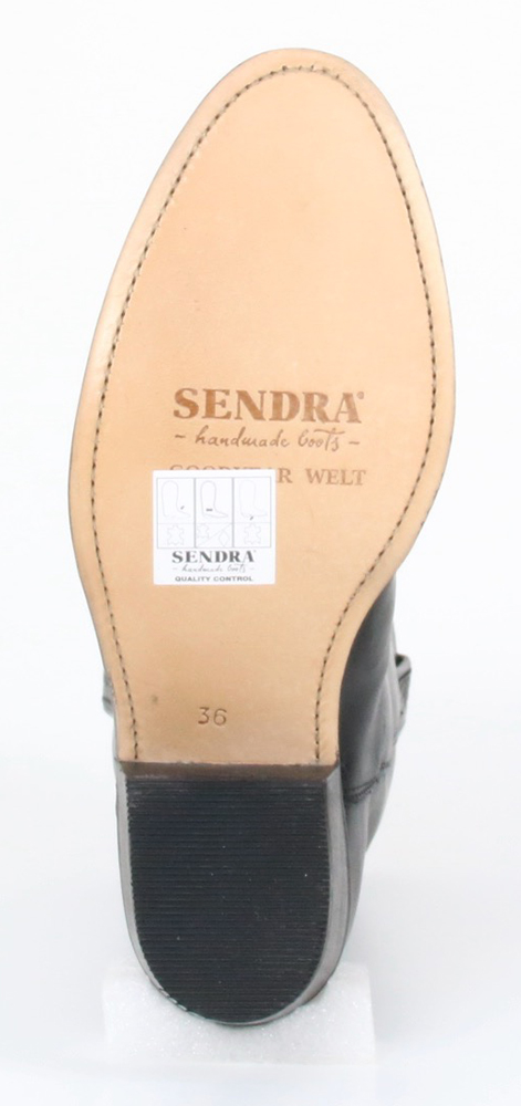Zwarte leren dames laars van Sendra. De hak is 5 cm hoog en de laars is goodyear gemaakt op een luxe leren zool.