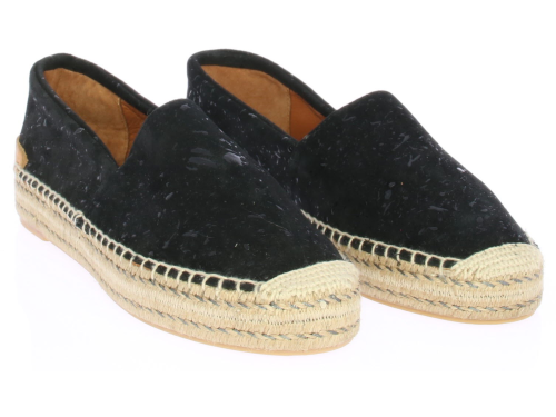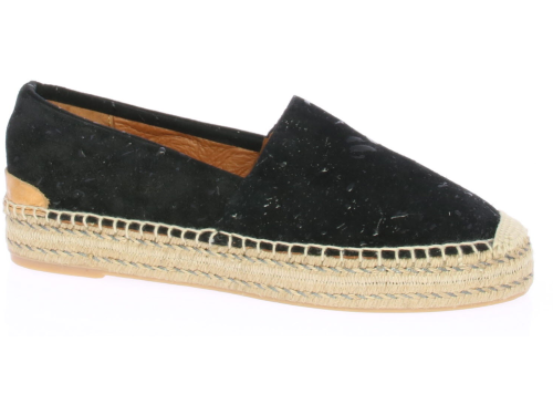 Zwart, suede dames espadrille van Via Vai. De glimmende zwarte spetters geven een speels effect.
