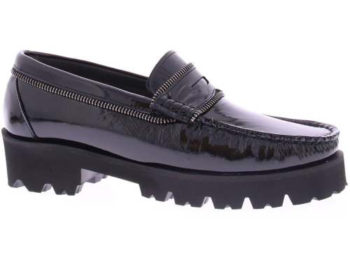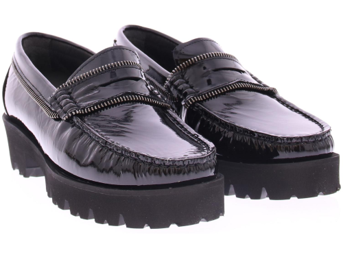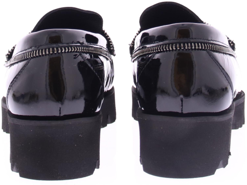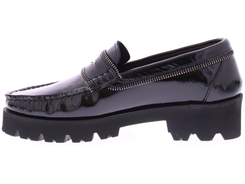 Zwarte lakleren dames instapper van Vittoria Mengoni. Deze instappers zijn voorzien van verfijnde ritsdetails, die een speelse en trendy touch aan het ontwerp geven. Het comfort wordt gegarandeerd door de zachte en comfortabele binnenzool, de sportieve rubberen zool heeft een hoogte van 2 cm.