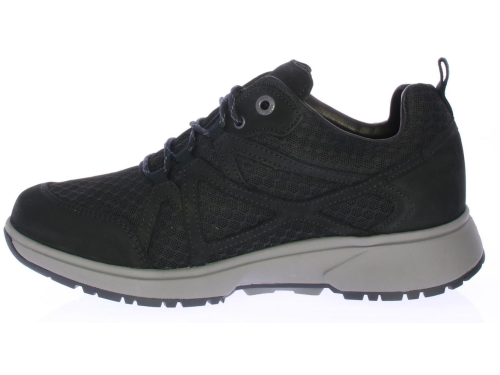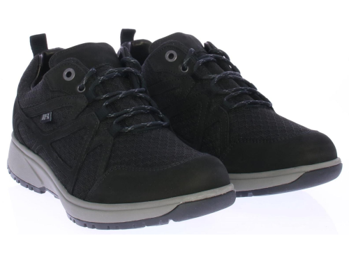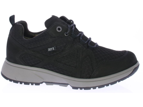 Zwarte nubuck / stoffen heren wandelschoen van Xsensible. Het bovenwerk van de schoen is een combinatie van stof met leer en de schoen heeft een rubberen zool. De binnenzool is uitneembaar.