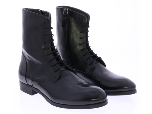 Zwart leren dames veterlaars van Pantanetti. De laars is uitgevoerd in soepel buffelleer. Vanuit de fabriek al een veroudering meegeven voor een stoere look, het leer blijft met een goede voeding heel mooi van kleur. Aan de binnenzijde heeft de laars een rits.
