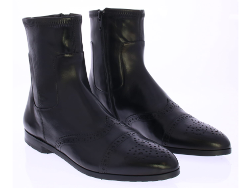 Zwart leren dames enkellaars van Truman's. De laars is heel soepel en heeft een heel comfortabel voetbed. De schacht sluit mooi aan door het stretch materiaal in de schacht.